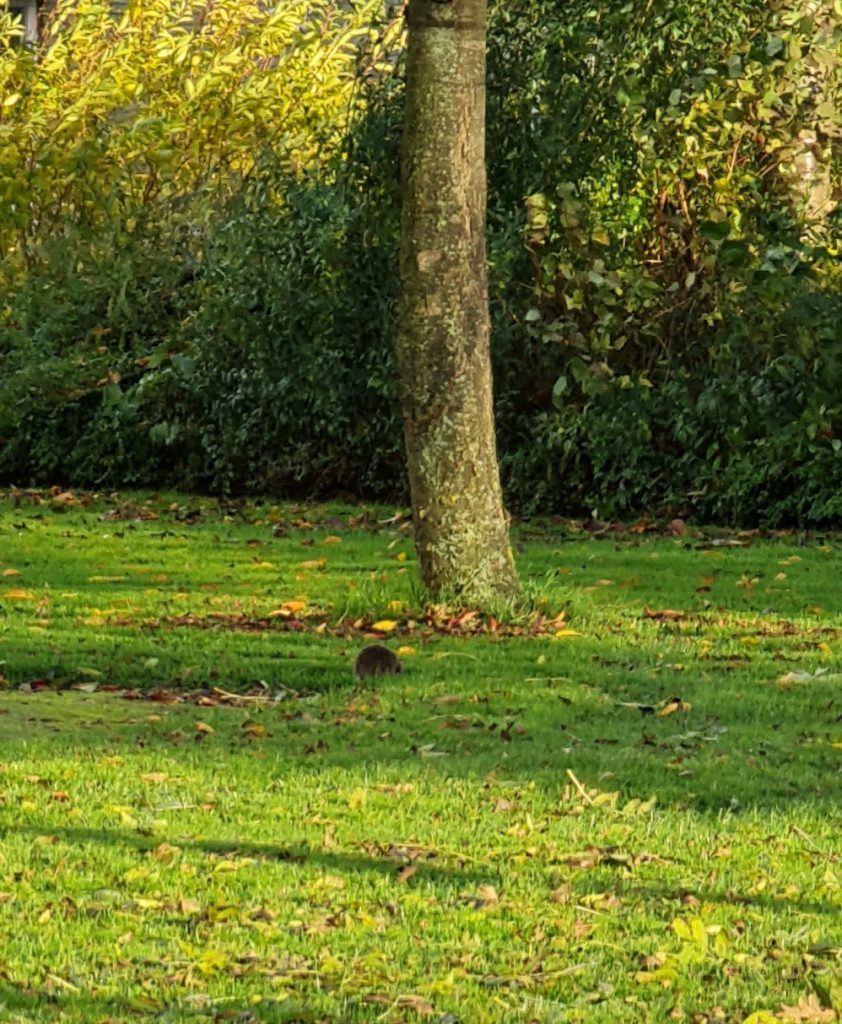 En nu we  het toch over egeltjes hebben.  Zondag werd een ondernemend egeltje gespot bij de Appelboom, snuffelend in het gras. Een alerte voorbijgangster, Suus, heeft de egelopvang gebeld. Zelf dacht ik: het beestje is op zoek naar een winterslaapplekje. Maar nee, ik denk dat Suus een foto opgestuurd heeft, want bij het 2e belletje werd geadviseerd om het egeltje toch mee naar huis te nemen omdat het te klein is.