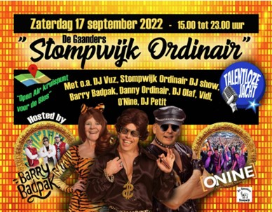 De Gaanders organiseren in samenwerking met Barry Badpak en vele artiesten ‘Stompwijk ordinair’ op het kruispunt bij De Bles zaterdag 17 september. Er zullen verschillende optredens en shows plaats vinden alles georganiseerd door Barry Badpak samen met verschillende deejays en artiesten. Aanvang 15 uur.