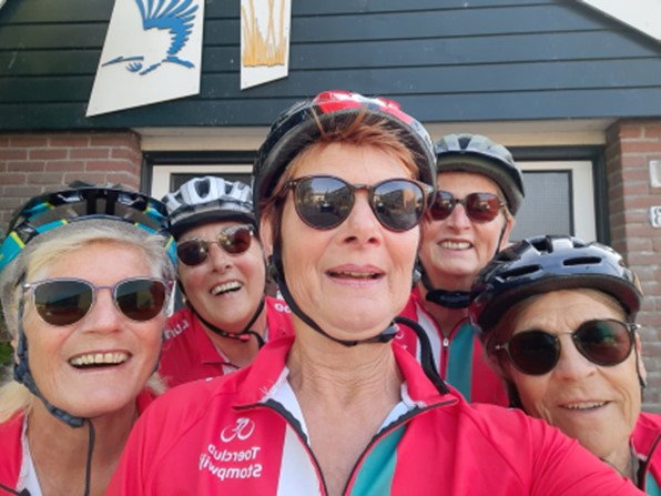 P.S.: wie weet waar de foto met de 5 fietsters is gemaakt, mag het zeggen….. 😉