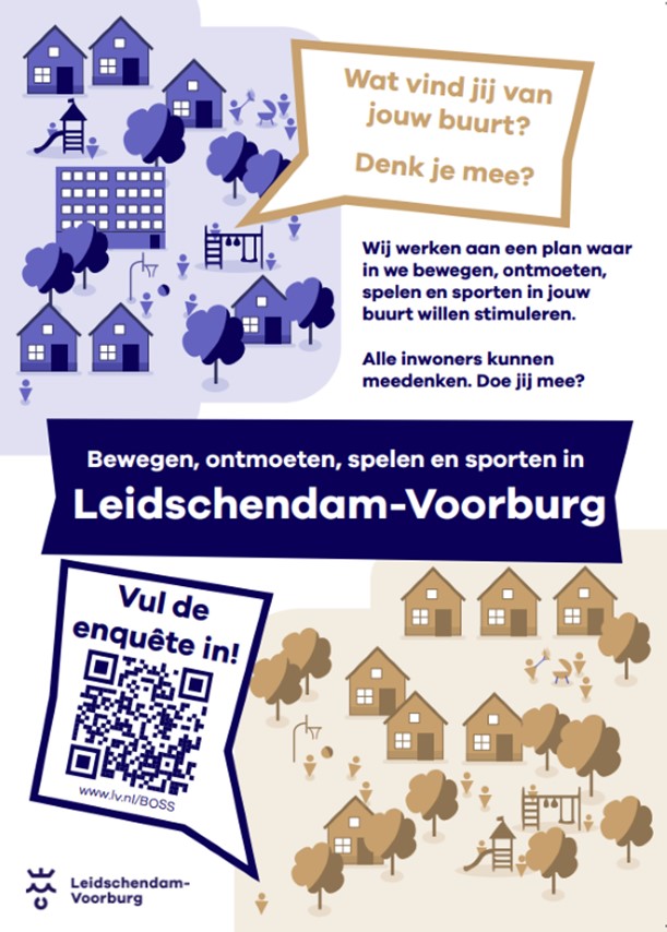 Ga voor het invullen van de enquête naar www.lv.nl/BOSS of scan de QR code op de flyer. Vraag ook anderen in jouw buurt om mee te denken. Samen maken we de openbare ruimte nog leuker en toegankelijker om te bewegen, ontmoeten, spelen en sporten!