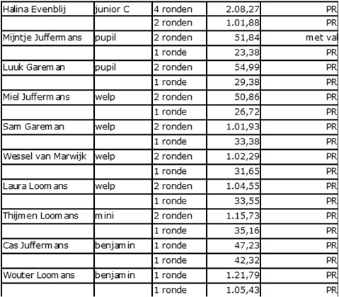 Mijntje was in haar rit gevallen, dus heeft ze op twee ronden haar PR niet kunnen verbeteren, maar dat komt volgende keer vast goed.
