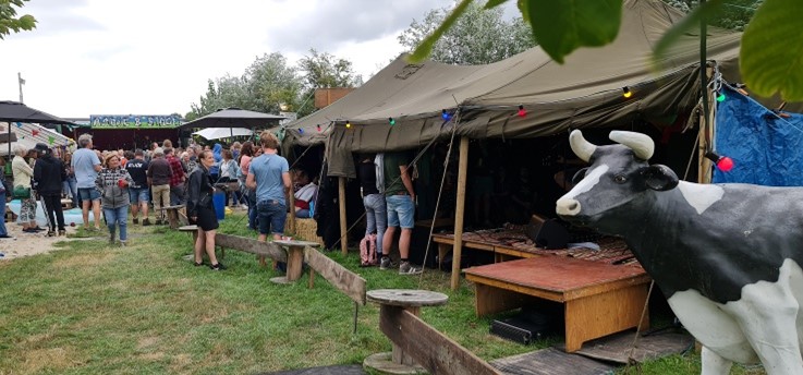 En diezelfde buurman nam me mee naar een heel raar muziekfeest, Koeienpop. Bizarre humor. Goeie muziek. Mooie sfeer. Zelf drinken meenemen en in een teil met water gooien.