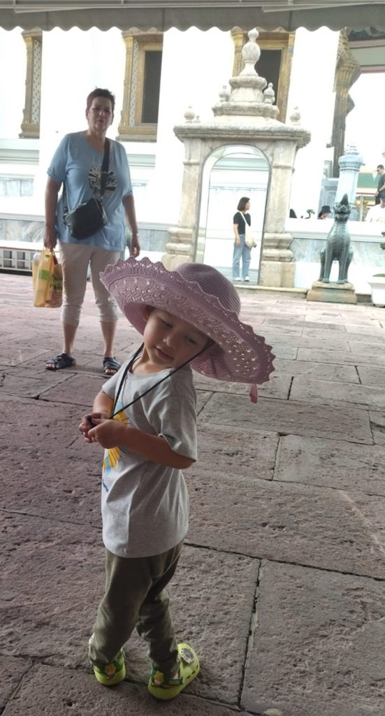 We hebben ons geïnstalleerd in het hotel in Bangkok. De cadeautjes werden uitgepakt en het nieuwsgierige karakter van Vince kwam meteen naar boven. Overal moest hij op drukken en aanzitten. Tot hij op een gegeven moment zelfs de receptie aan de telefoon had.