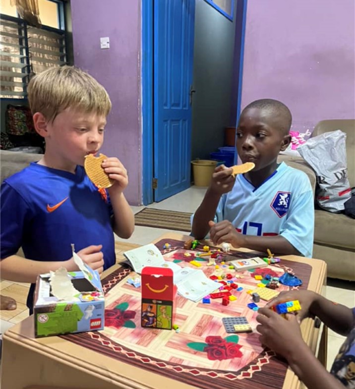 Maar deze vind ik prachtig, 2 jongens bijna even oud die zich samen heerlijk vermaken met Nederlandse spullen in Ghana .