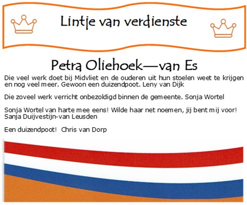 Lintje van verdienste voor: