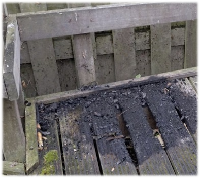 Even een optelsom wat er allemaal is vernield…. Er zijn meerdere steigerplanken in de brand gestoken, ons vogel infopaneel is spoorloos verdwenen, onze bebording is vernield, veel afval achtergelaten en heel de kijkhut ligt vol glasscherven.