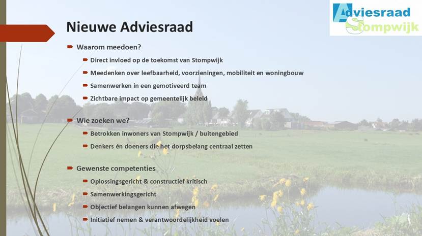 Neemt u een kijkje op www.stompwijk.nl/adviesraad