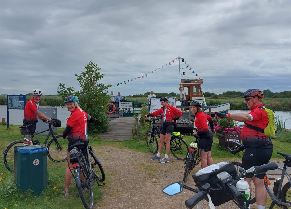 Voor de terugweg de kortste route aangehouden en komen verrassend uit bij wat we eerst dachten doodlopende weg, die naar een grote plas leidde. De captain wilde alweer terug toen de andere zagen dat er een pontje was! Nou dat vinden we wel leuk en verrassend!